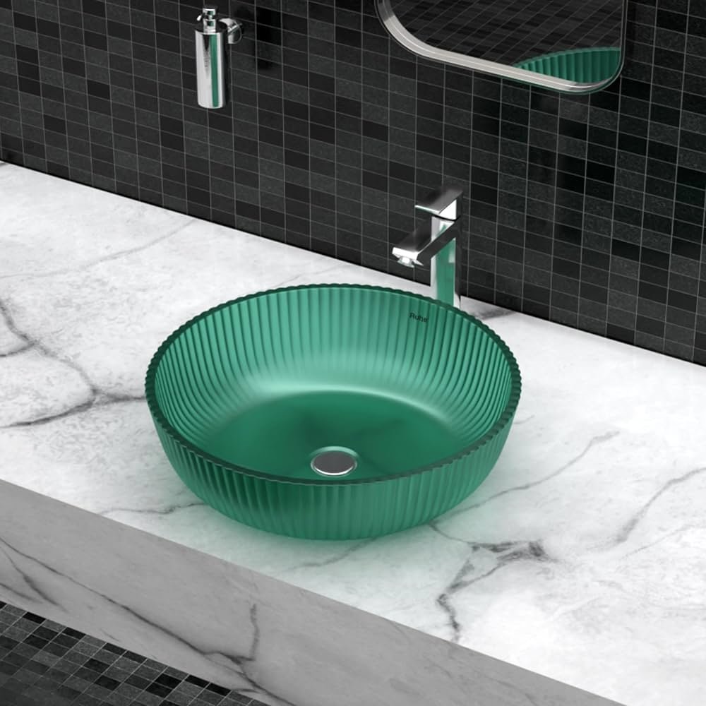 A glass vessel sink is the ideal way to create a luxurious and elegant feel in your bathroom. These are some of the designs in wash basin tiles, a new design that is available in finishes like plain, frosted, designer glass, as well as textured. They pick up light wonderfully to create a light, airy feeling around your washing area.