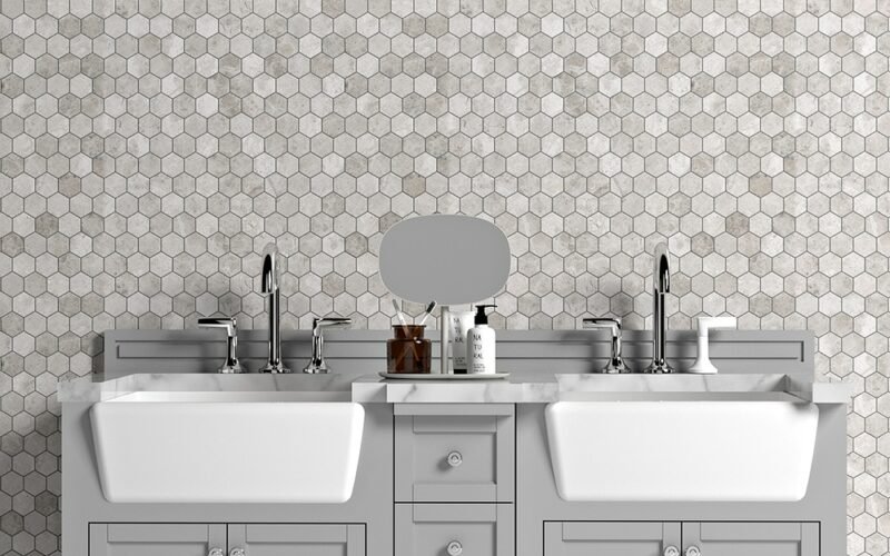 12. Elegant Hexagonal Wash Basin Tiles Ideas